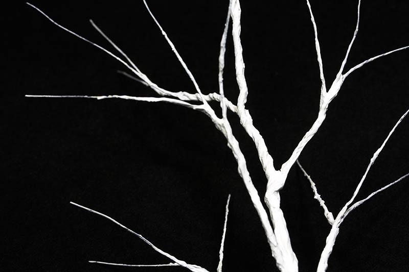 5단계 : 모델링 페이스트의 평균 건조시간은 략 2~3 시간 정도 입니다. 3번정도 반복하여 바르면 자연스러운 나무의 형태를 얻을 수 있습니다. 잔가지의 경우 모델링페이스트가 묻은 붓의 허리로 툭툭 쳐주면서 모향을 내어 줍니다. 헤어드라이기를 사용하면 건조시간이 단축됩니다. (사진 5)