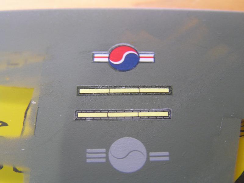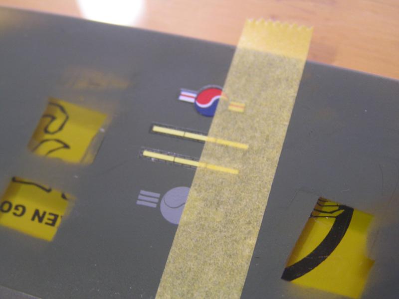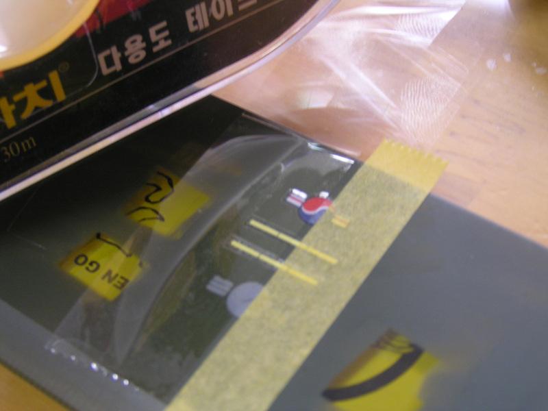 데칼을 다 붙이고 실험에 들어 갑니다. 먼저 마스킹 테이프(타미야제) 붙입니다.