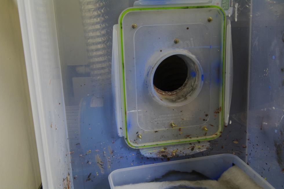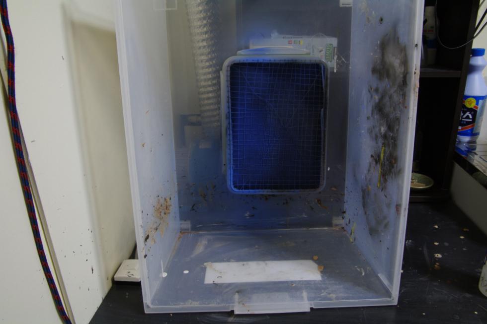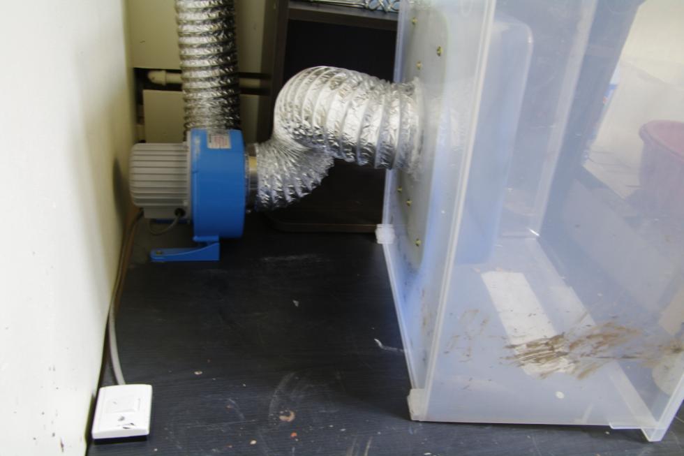 큰박스 바닥에 원형 반찬통 넣을 구멍뚫고,반찬통 바닥도 따내야겠죠. 뒤에 송풍기를 직접 다실 분은 그에 맞는 구멍 뚫으시고, 저는 사진처럼 했습니다.