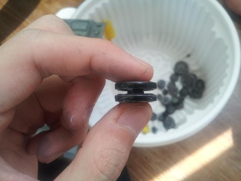 바퀴는 타미야 에나멜 플랫 블랙으로 도색을 했었는데요 이게 잘 벗겨지는 놈이 있는가 하면,
