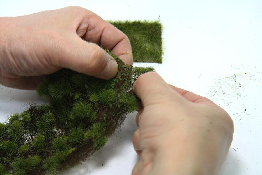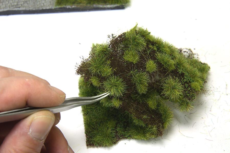 4) 다음은 스팟형 잔디를 분리해 보았습니다. 이렇게 하나씩 핀셋으로 뜯거나 가위로 지대를 오려서 원하는 위치에 표현 할 수 있습니다.
