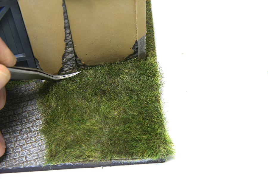 5) 스트락쳐 그라스의 1차 레이어가 되는 6mm 매트를 가위로 오린다음 그라스 글루로이용하여 붙여주었습니다.