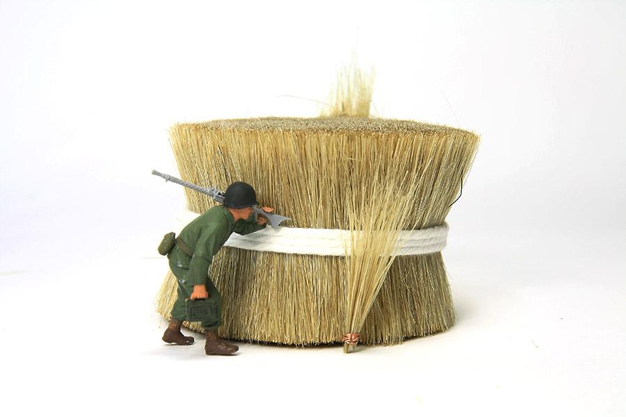 1/35 크기 인형 절반 정도의 크기로 보시면 됩니다. 한 묶음을 뽑은다음 중간 정도 부분을 손으로 잡고 에나멜선등으로 칭칭 감아주면 쉽게 갈대의 모습을 제작할 수있습니다. 길이가 길기때문에 자연스럽게 모양을 낼수 있고, 가위로 트림을 내어주지 않아도 자연스러운 형태를 볼수 있습니다.