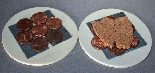 1) 구성하고자 하는 베이스에 양면테입을 붙이고 동전 및 코르크 조각등을 올려 베이스에 볼륨을 줍니다.