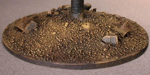 1단계 : Flat Earth 늘 넓은 붓을 사용 전체적으로 드라이 브러싱 합니다. 건조 후 Yellow Ocher 로 드라이브러싱 하여 땅 및 자갈등에 하이라이트를 줍니다.