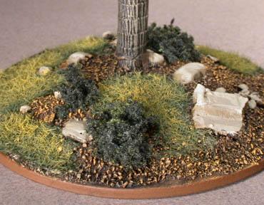 3단계 : 잔디 및 풀을 붙여줍니다. 순서는 어두운색에서 밝은색 순 입니다. 잔디를 붙일때는 역시 목공본드 원액을 사용하는게 좋습니다. 잔디가루가 완전건조후 Yellow Ocher 로 브러싱 하여 잔디지대에 하이라이트를 줍니다.
