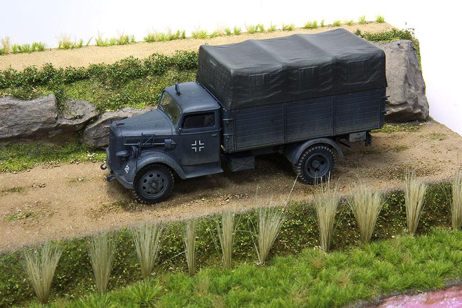 자 이제 완성 이 된듯 합니다. 베이스 완성 사진 함께 보시죠. 사진 속 차량 은 이타레리 1/35 스케일 오펠 입니다.