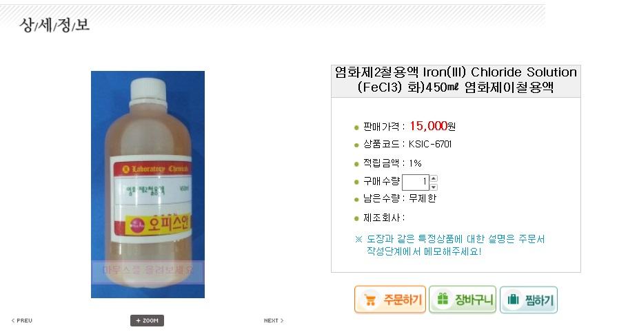 포럼글에서 프리울궤도 변색에 쓰이는 것이 사진과 같은 염화제2철용액이라 봤는데요,