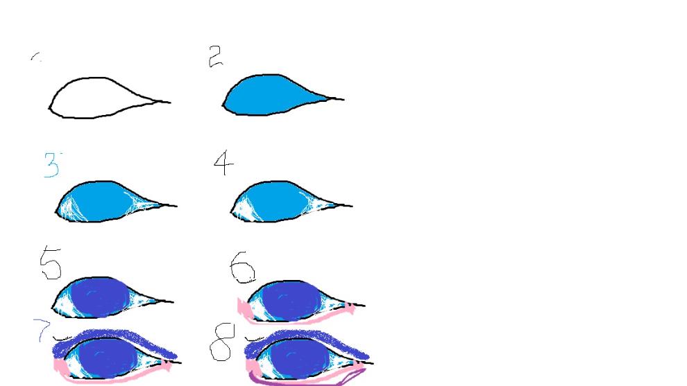 7 윗 속눈썹 라인을 진한 파란색으로 긋습니다. 실제는 머리 방향으로 더 굵게 그어도 됩니다.