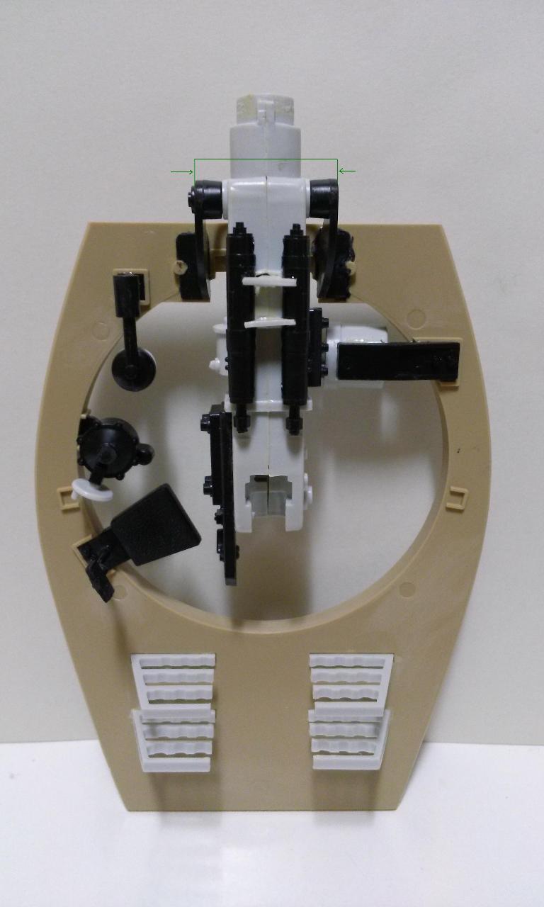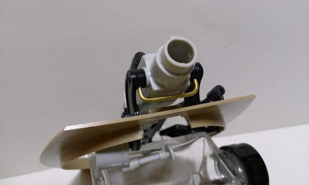 처음 작업에서는 황동봉 보강부위가 아래쪽으로 더 튀어나온 형태라 포탑 상부와 결합이 되지 않더군요. 그래서 꼽히는 부분의 길이를 조금 잘라낸 후의 모습입니다.