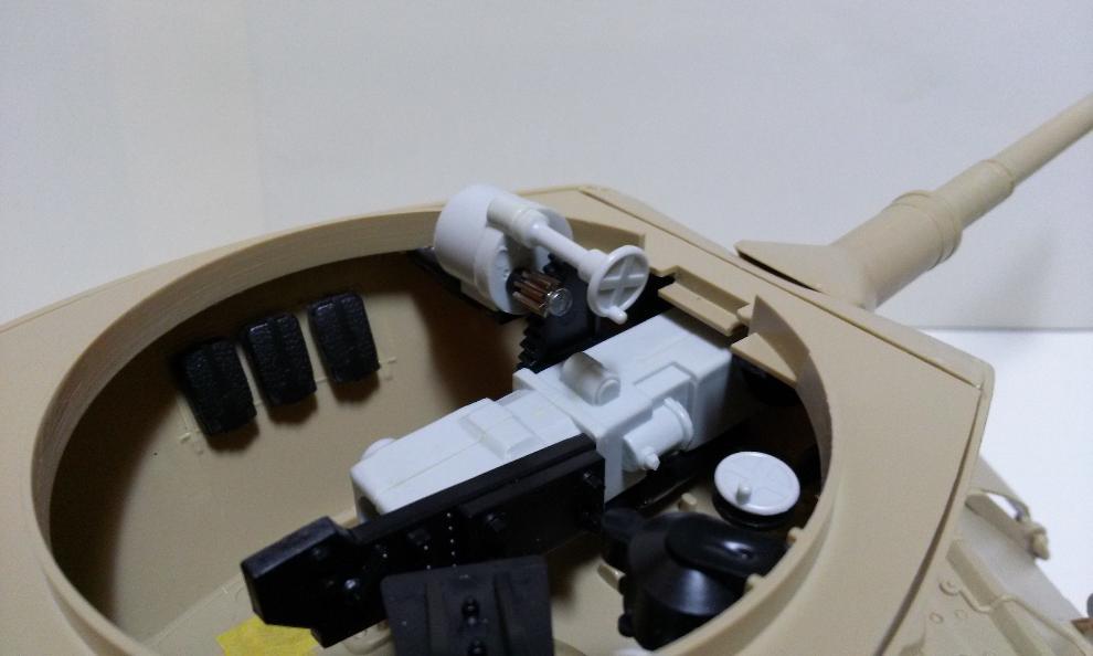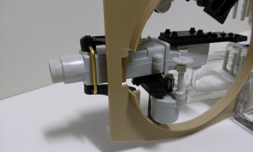 포신 및 뒷 부품의 크기와 무게가 있는데 반해, 고정해주는 부품은 좌우 단 두 개밖에 없습니다(검정색 부분). 그래서 상하 이동 시는 물론이구 유격이 있어서 흔들리는 현상이 있었습니다. 1/35 크기의 전차라면 크게 문제될 부분은 아닌데 24스케일에서는 문제가 되는 것 같습니다.
