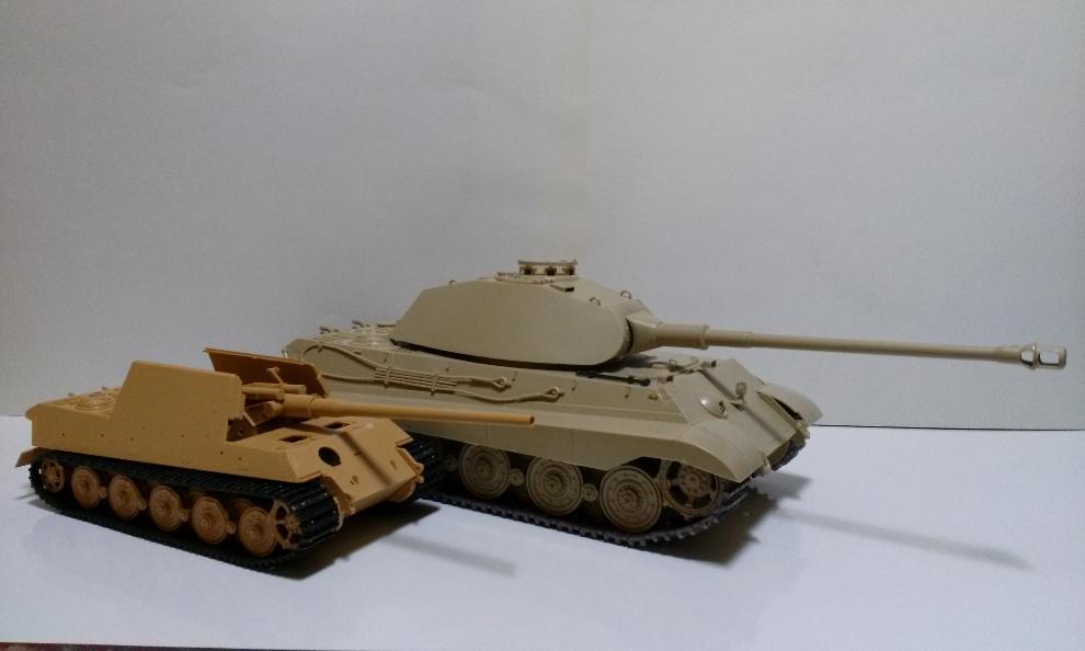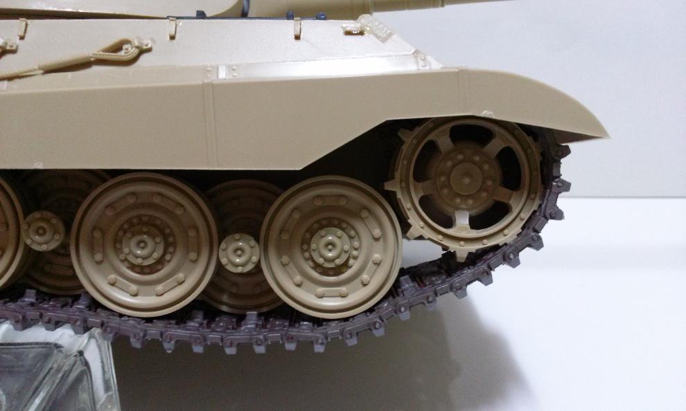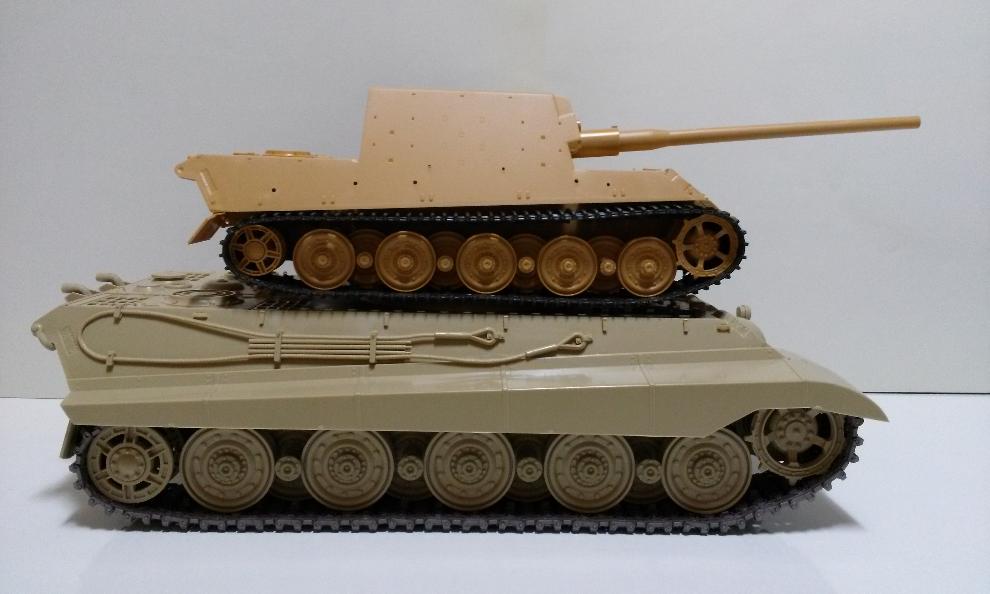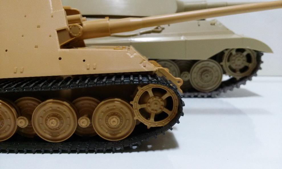 요즘 작업중인 타미야 야크트티거(신금형)와 비교해보았습니다. 디테일 수준은 비슷하거나 야크트티거가 더 우수한 부분도 있는 것으로 보입니다. 그런데, 플라 색감과 질감이나 볼륨감은 반다이 쪽이 훨씬 뛰어난게 아닐까 합니다. 가동식 서스 및 캐터필러나 바퀴의 압도적인 볼륨감 등에서 비교대상이 되지 못하는 것 같습니다.