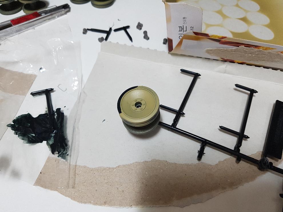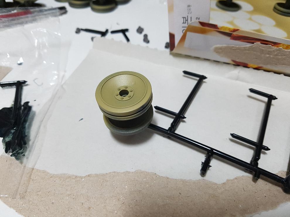 차체를 도색할 때 궤도와 바퀴는 마스킹을 생각해 볼 수 있는데, 바퀴 도색도 하여야 해서 분리 후 도색해주었습니다. 1/25 크기를 생각하면 마스킹 부위도 꽤 커서 합리적인 선택이 필요할 듯 하네요.