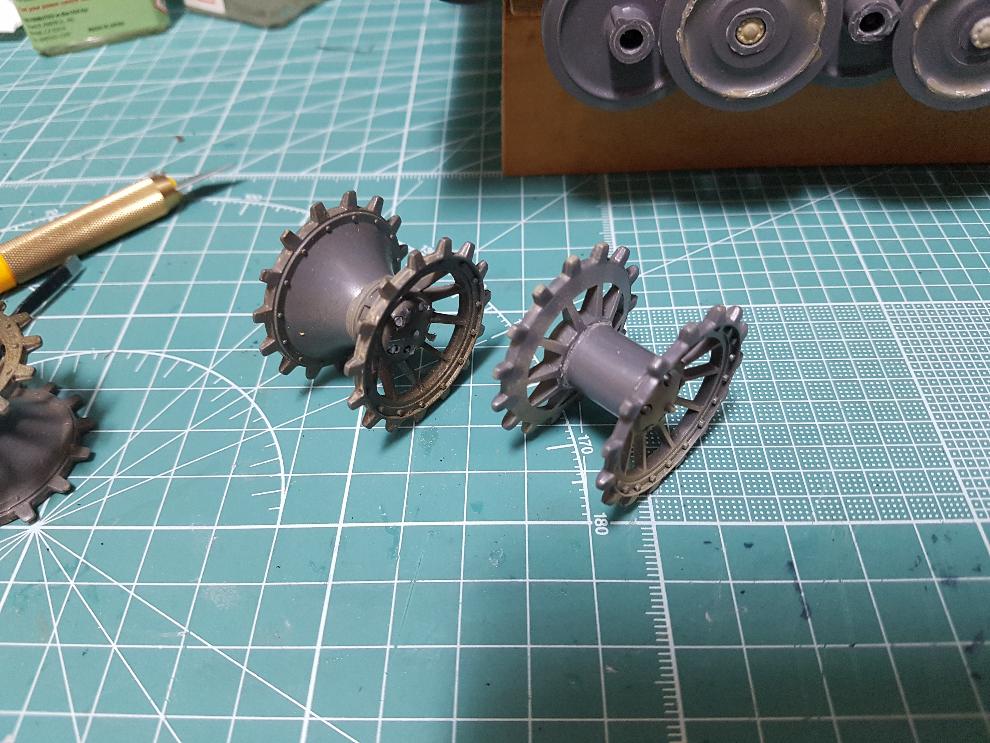 어쩌다 좌측의 타미야 개수판 타이거 스프로킷을 구하게되었는데, 내측 구멍막힘과 형상이 변경되었더군요.
