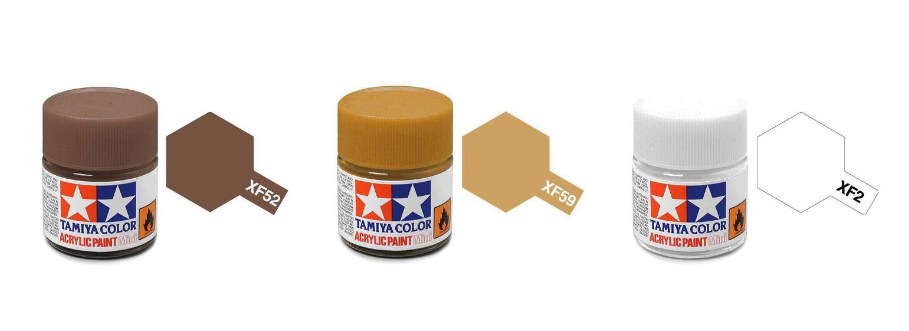 땅사진과 도료색상을 보면서 생각을 해보자. 사진의 땅은 태양빛에 노출되어있는 모습이다. 그런데 태양빛이 없거나 어두어지면 과연 어떤색을 띄고있을까? 유화물감을 제외한 아크릴 도료 3가지중 하나를 선택한다면 바로 Flat Earth XF52 일것이다. 즉 플랫어스를 기본색으로, Desert Yellow XF59, Flat White XF2 를 적절하게 믹스 하여 블랜딩을 넣어주는단계를 거쳐, 어두운부분의 쉐도잉 그리고 전체적으로 톤을 맞추어주는 유화 로우엄버의 워싱단계로 사실감있는 땅의 표현이 가능하다 할수 있겠다.