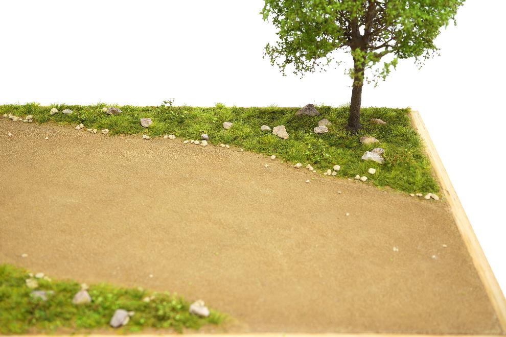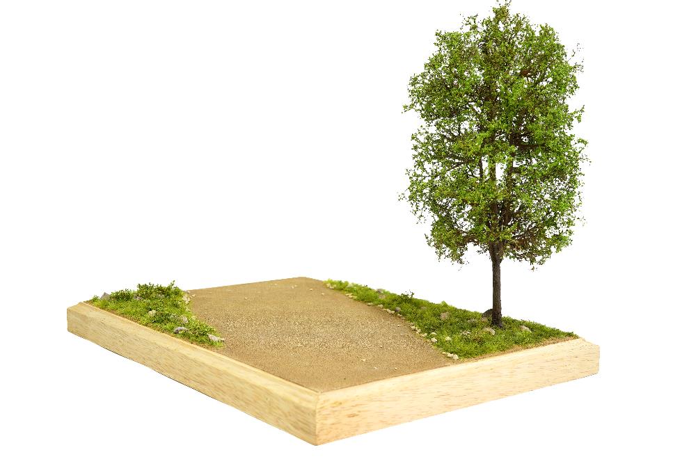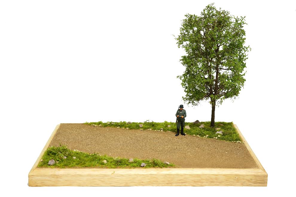 디오라마 베이스에 나무를 올려주었다. 프라스틱재질임으로 목공본드 보다는 순간접착제를 사용하여 원하는 위치에 붙여주고, 나무를 지지하는 둥근부분에 목공본드를 바르고 잔디가루로 덥어준다.