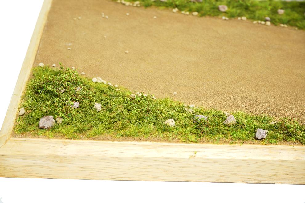 디오라마 베이스가 완성된 모습이다. 베이스 중앙의 마른땅 지대는 아크릴 데저트엘로우 와 플랫화이트를 거의 밝은 베이지 톤으로 만들어서 중간중간 브러싱을 하여 밝기와 톤을 조절해 주었다.