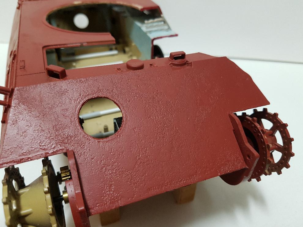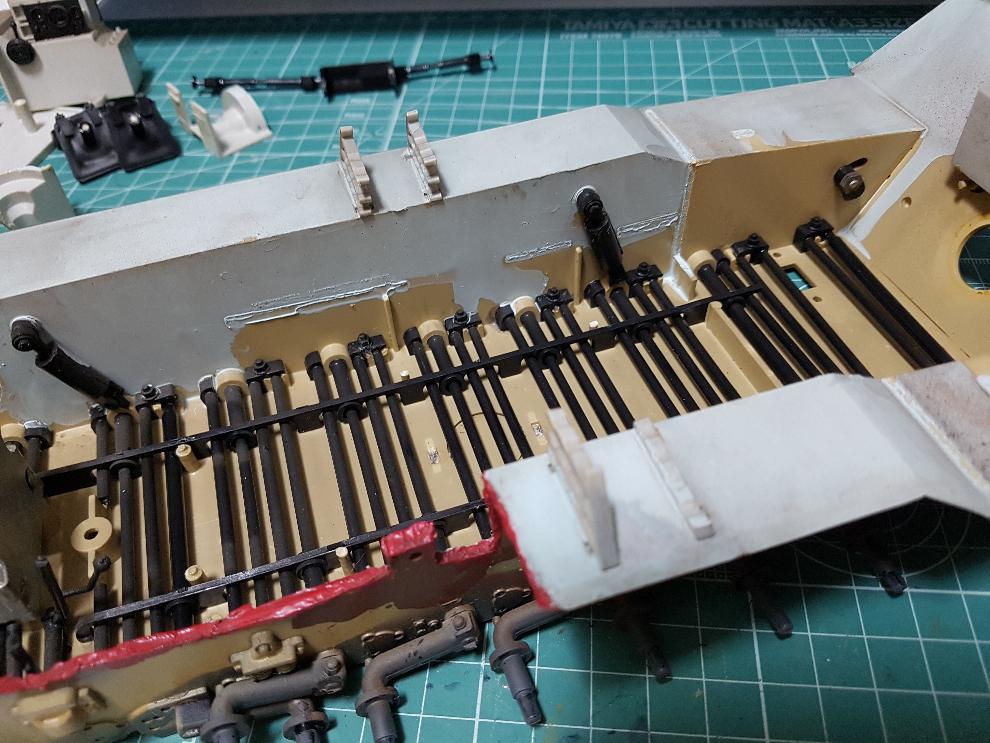 나중에는 차체 상판도 일부 보강판을 만들어줘야 겠더군요. 포탑의 무게도 있고 눌림 등에 대비하기 위해서요.