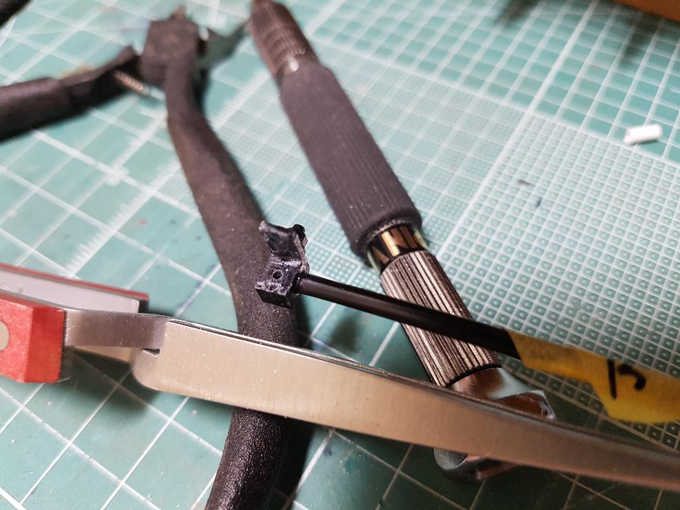 이제는 에폭시 퍼티로 마운트에 피아노선 끝 부분을 단단히 고정하는 일만 남았네요.