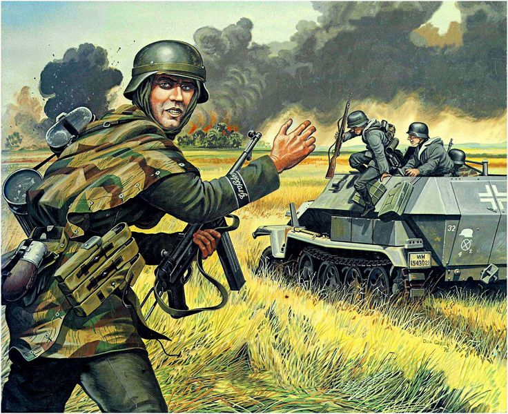 제가 찾아본 바에 따르면, 실제 국방군에서 위장무늬로 만든 전투복을 착용한 사례는 매우 드뭅니다. SS의 경우 위장무늬를 인쇄한 전투복을 운용한 사례는 있지만 육군에서는 개인 위장에 덧옷(Smock)이나 우의(Zeltbahn)를 주로 사용했고, 기갑용 상/하의 정도가 그나마 위장무늬를 인쇄한 전투복이라고 볼 수 있습니다.