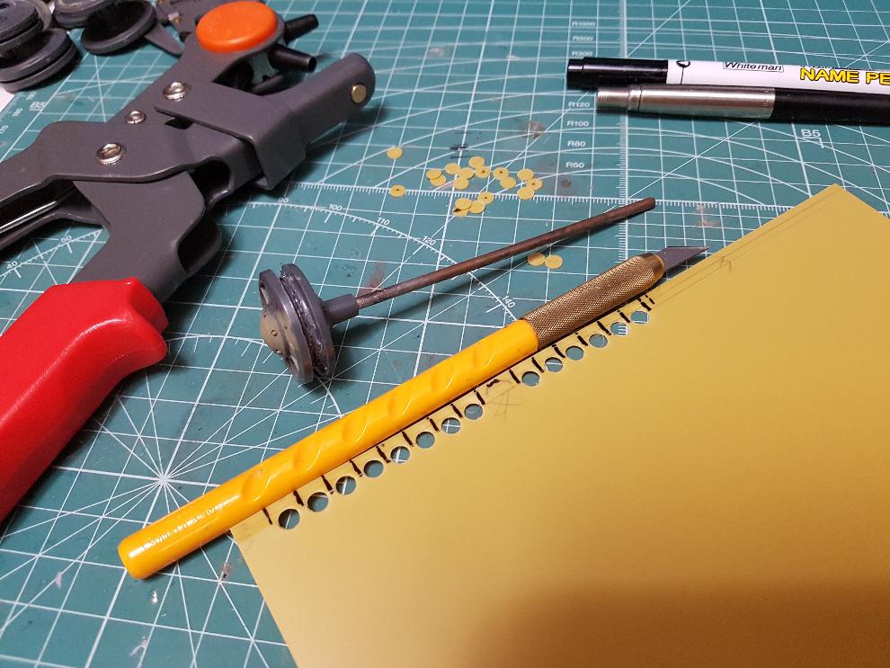 0.5mm 플라판이라서 가공성이 좋구, 특히 타미야 플라판 대비 다크옐로우 플라판은 꽤 무른 성질을 띠네요.