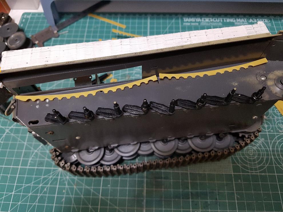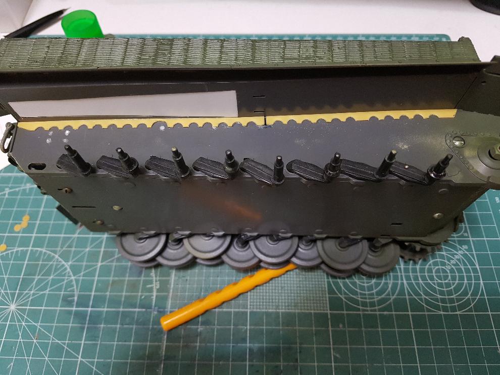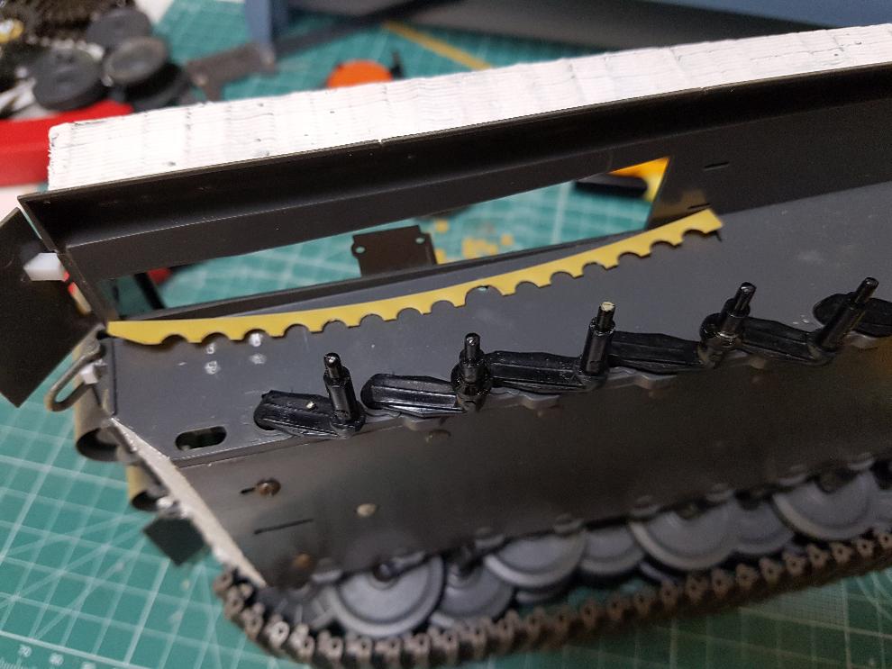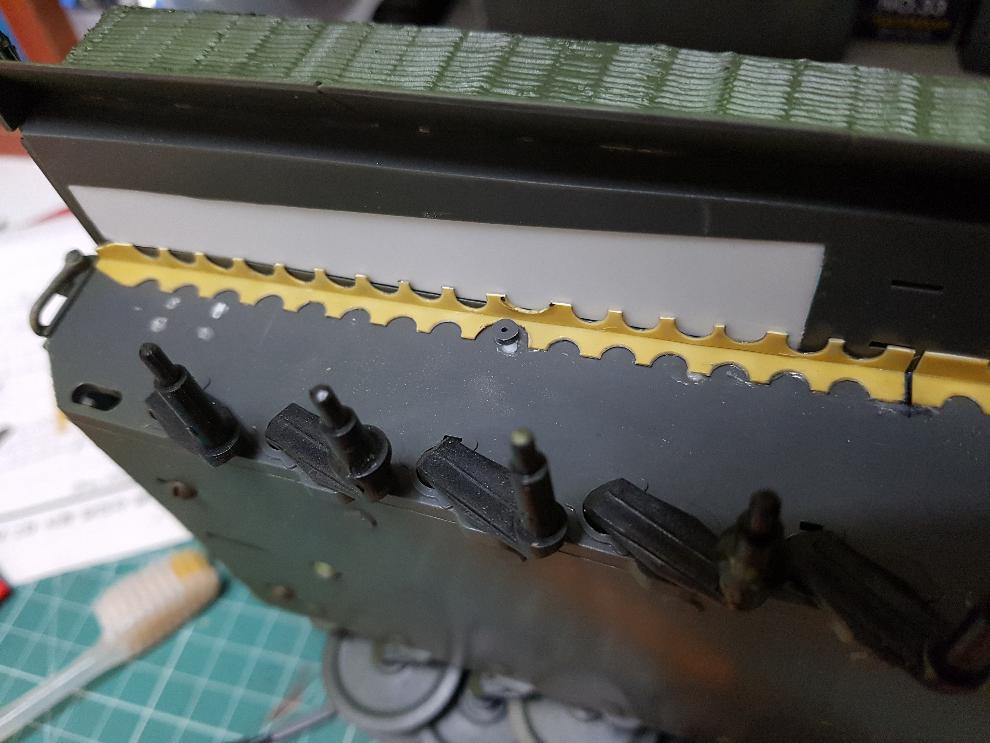 타이거1 전차는 내부에 쇽업쇼버 4개가 장착되는 것으로 하는데, 그 고정부위가 차체 측면에 튀어나와 있는데, 그 부분을 표현해주었습니다.