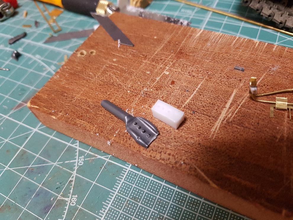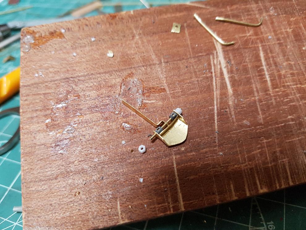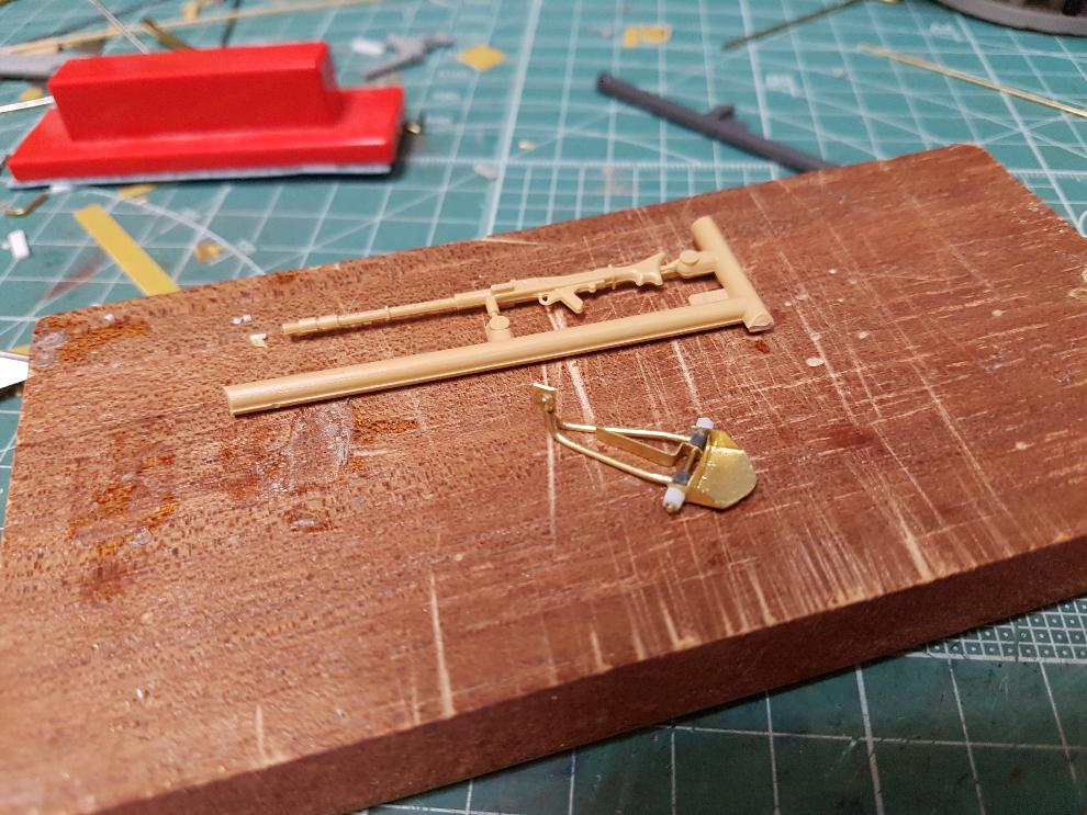 탄창 거치대는 한쪽은 얇은 판이구 다른 쪽은 봉의 형상이라서 황동선과 에칭 남은 부분을 조합해주었습니다.