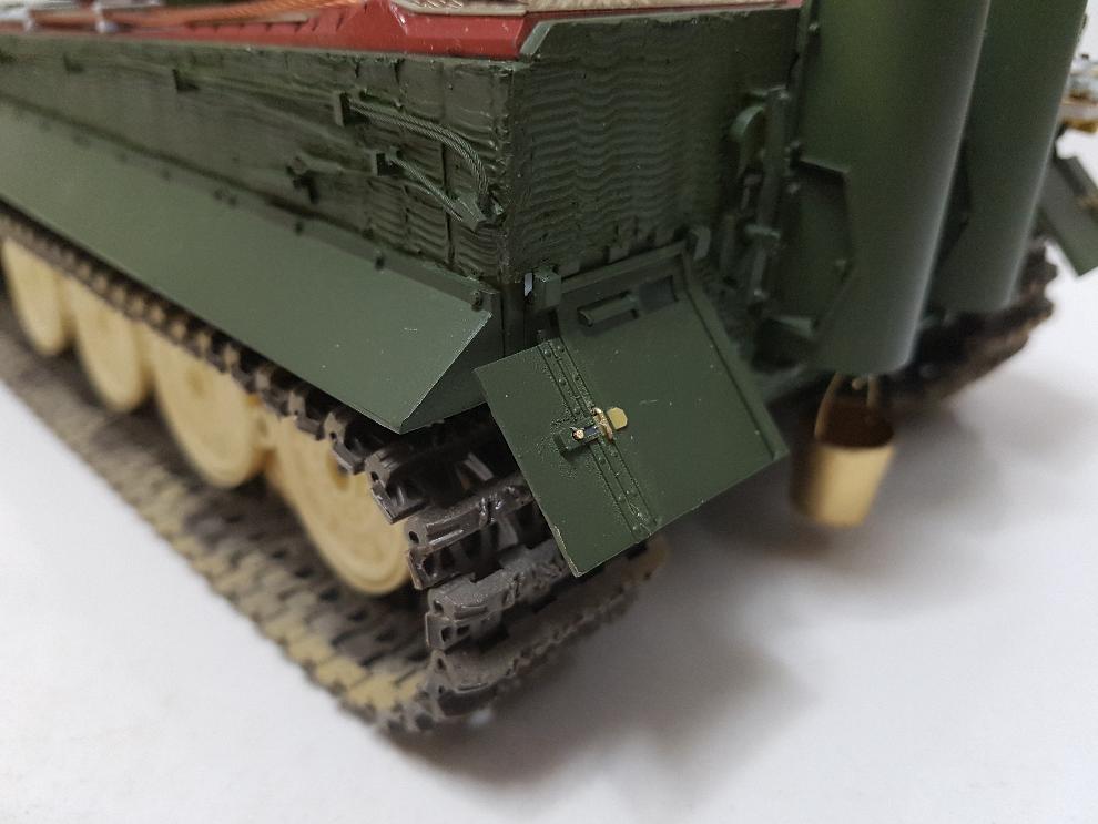 전차 앞 휀더 고정 걸쇠 작업 모습입니다.