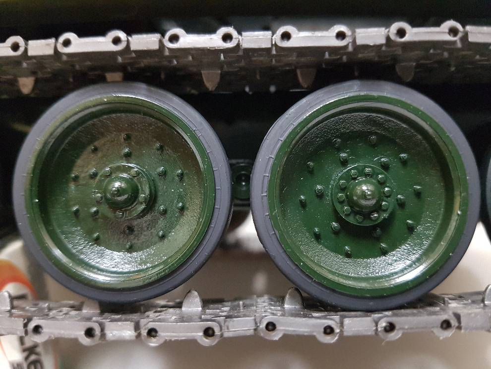 그런데, 타미야킷의 경우는 기어박스가 앞쪽에 배치되고 그래서 전륜(아이들러)이 가동휠이 되었습니다.