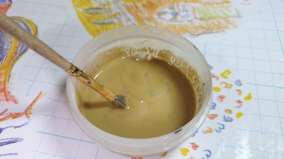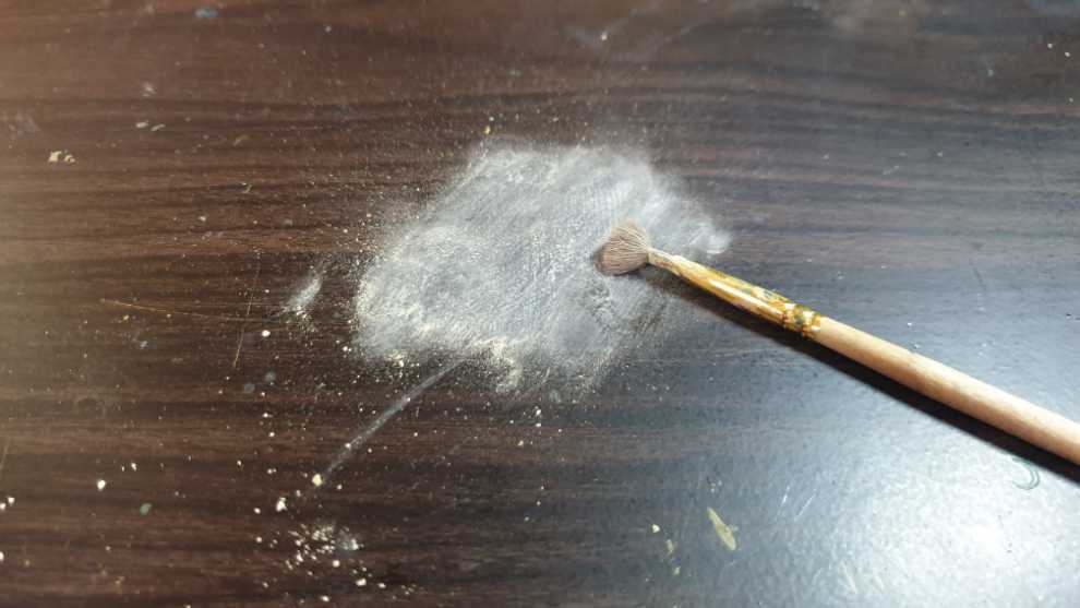 완전히 피그먼트가 굳어서 본래의 색깔로 돌아오면 평붓을 꺼냅니다.
