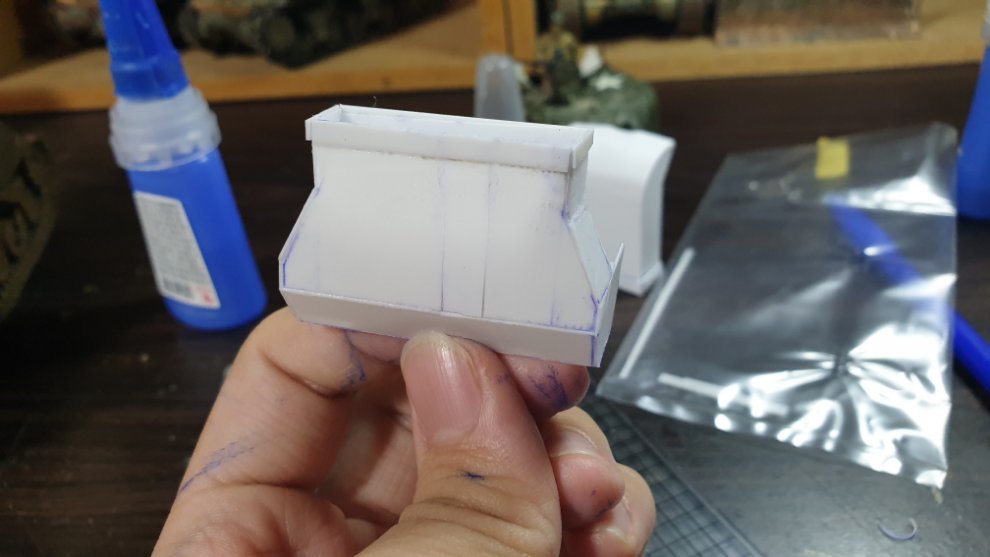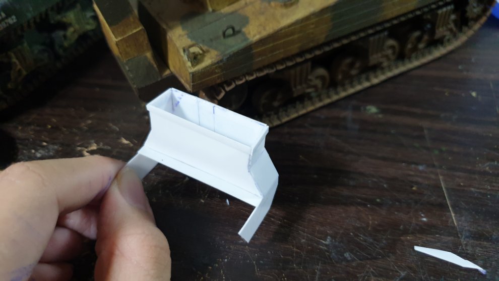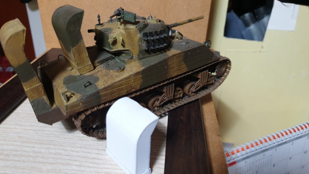 초딩 시절 붓으로 칠했던 경험이 있는 아카데미 M4A2 셔먼의 스노켈을 자로 재가면서 만들었습니다. 단순하다면 매우 단순한 방법인데 이게 좋더라구요.