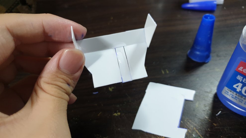 결국 남는거 하나 잘라서 순간 접착제를 뒷 쪽에 듬뿍 뭍혔습니다.