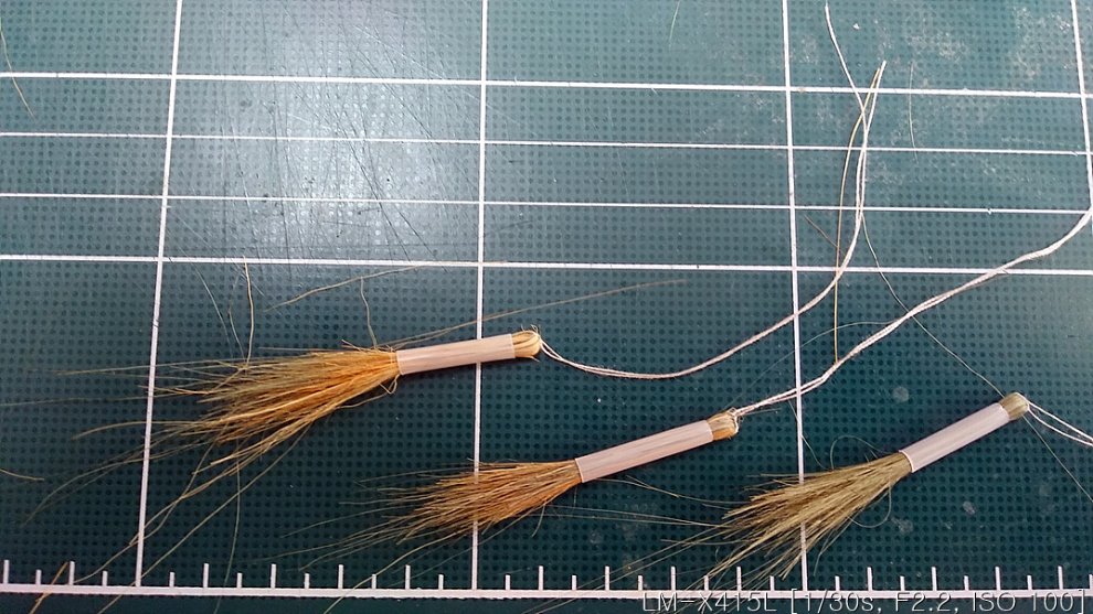 순접이 마르면 빨대에서 빼낸후 실로 묶인부분을 자르면 이런 잡초 2개가 됩니다. (가위로 끝 모양을 다듬었습니다.)