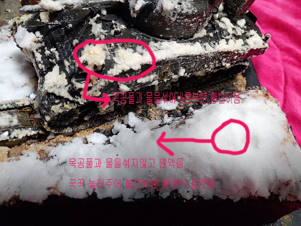 고로 목공풀과 물을 섞지않고 사용하면 식소다보다 황변이 잘안오는것 같다는 결론!