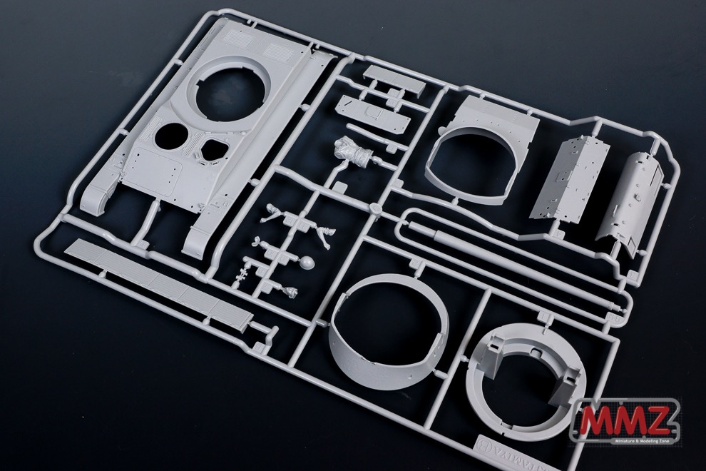 키트 구성은 일반적인 타미야 키트 구성에서 크게 벗어나지 않습니다. 포탑의 일부와 하부 차체는 일체형으로 구성되어 있습니다. 최근에 나온 제품들은 차체를 일체형으로 구성하지 않는 편인데 이 제품은 전통적인 구성을 하고 있습니다.