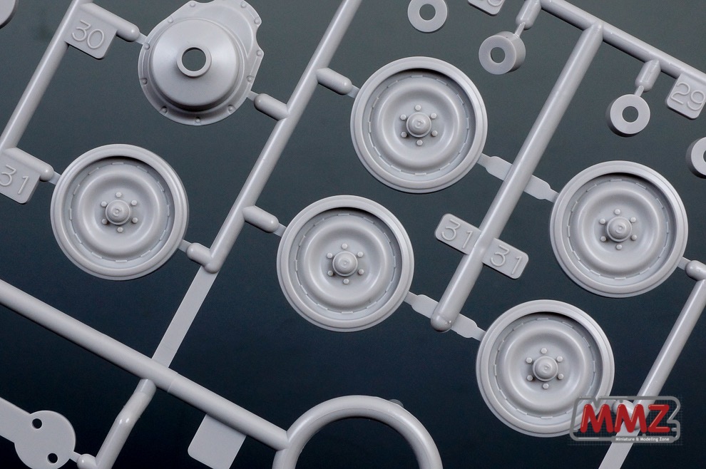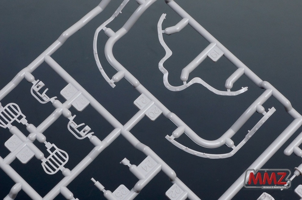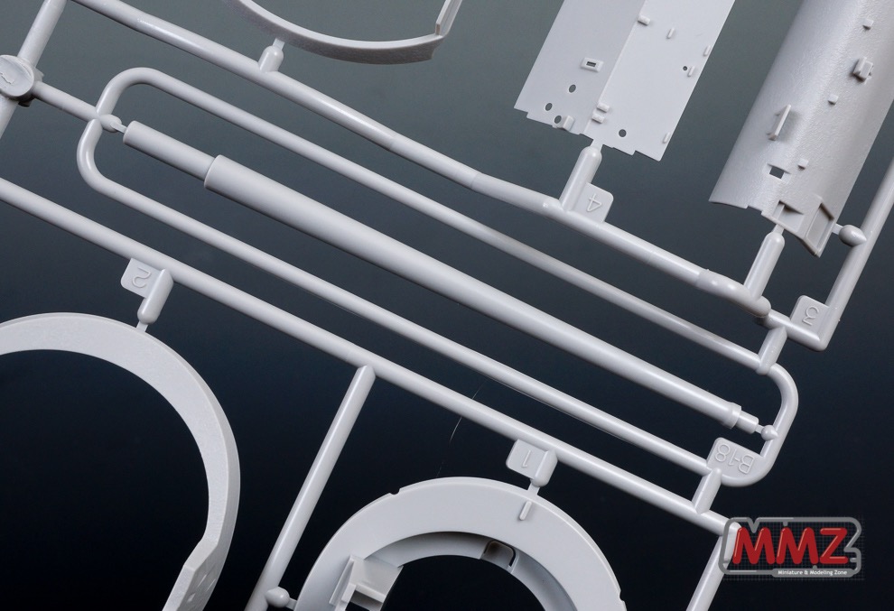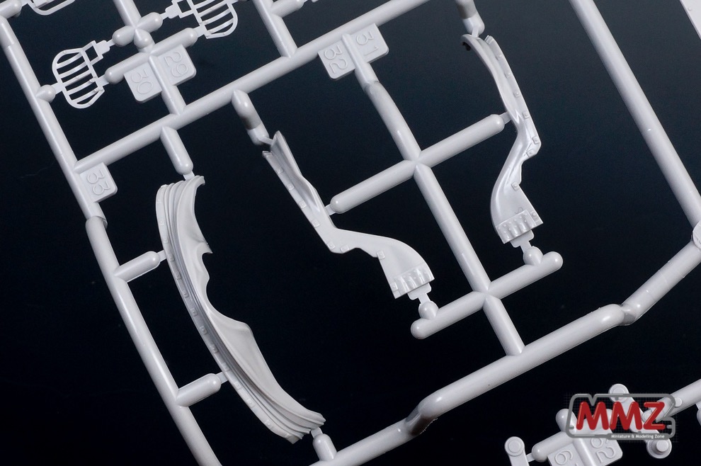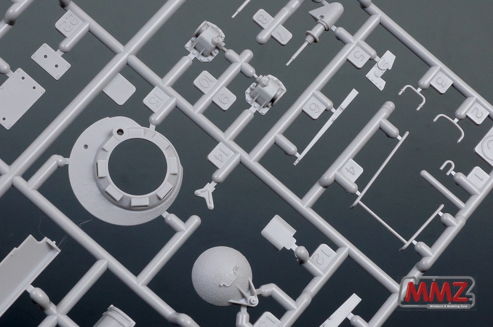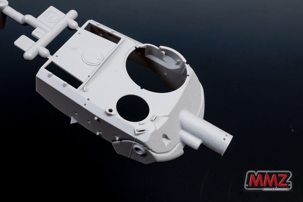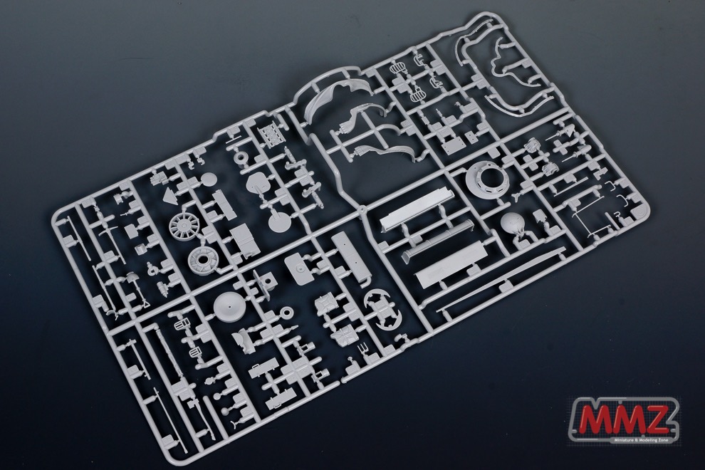 포탑 전체가 상하로 움직이는 독특한 구성을 재현하기 위해 포탑 부품의 분할도 독특합니다. 캔바스의 질감도 상당히 우수하며 접합 방식도 독특합니다. 요즘 나오는 타미야 키트들은 인젝션에서 다소 약점이라고 볼 수 있는 캔바스 주름등을 아주 잘 뽑아내고 있습니다.