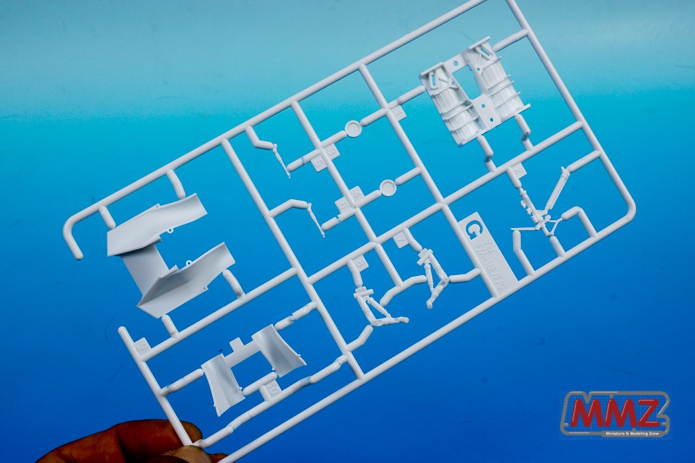 랜딩기어와 에어인테이크 내부 부품이 포함된 G 런너입니다. 흰색으로 사출되어 있습니다. 랜딩 기어 타이어 허브도 포함되어 있네요.