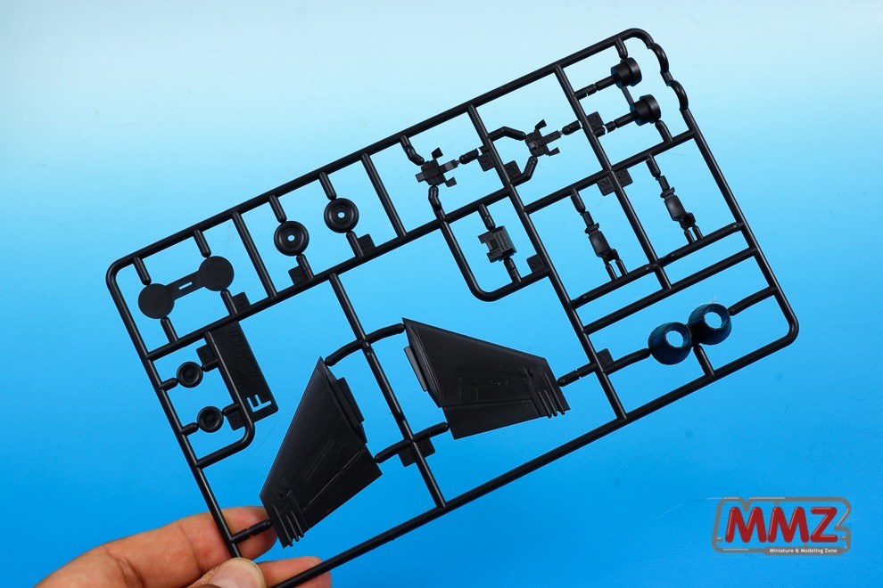 검정색의 F 런너입니다. 노즐과 시트 그리고 또 한쌍의 수직 미익이 포함되어 있습니다. 타이어도 보입니다.