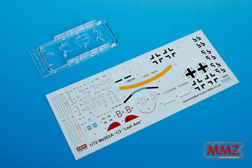 아카데미는 기존 1/72 Me262A-1/2 키트에 대전말 에이스 기체의 데칼을 추가한 제품을 한정판으로 발매했습니다.