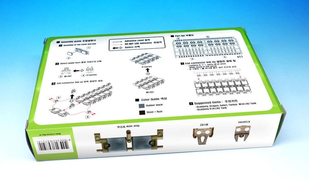본제품의 소비자 가격은 16000원으로 10월말 국내 모형 숍을 통해 판매될 예정입니다. 스케일 1/35 메이커 Def.model 제품명 T158 연결식 트랙 키트 (M1, K1, K2 대응)