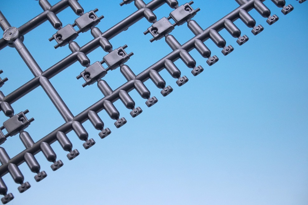 좌우 연결 핀의 모습. 슬라이드 금형을 이용하여 미리 구멍이 뚫려 있는데다 전후 디테일이 아주 좋습니다.