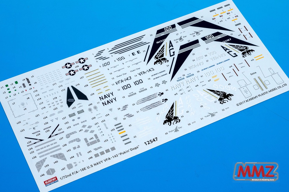 아카데미는 기본 MCP 키트로 출시되었던 제품을 보완하여 F/A-18E VFA-143 을 발매합니다. 일단 박스 아트에서 MCP와 관련된 문구가 모두 빠지고 기존 프라모델과 같은 구성으로 디자인된 것을 발견할 수 있습니다.