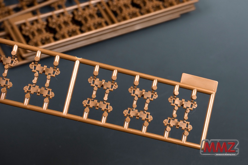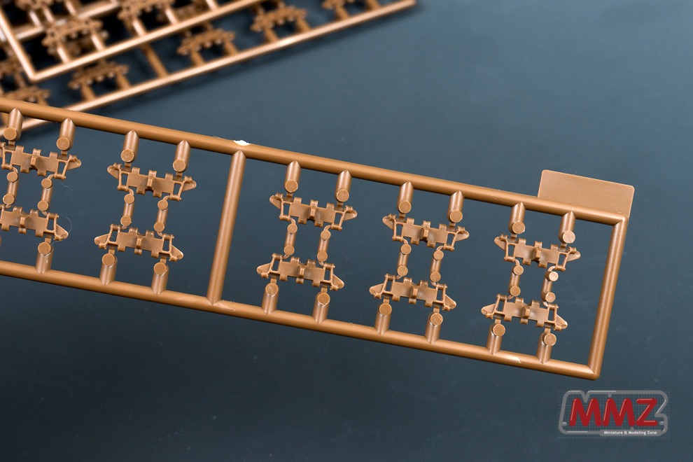 제품은 한 런너에 12개의 캐터필러가 들어있는 런너 18장으로 구성되어있습니다. 한 세트에 총 216개가 들어가는데 예비궤도에도 쓸만큼 충분한 여분이 들어있습니다.