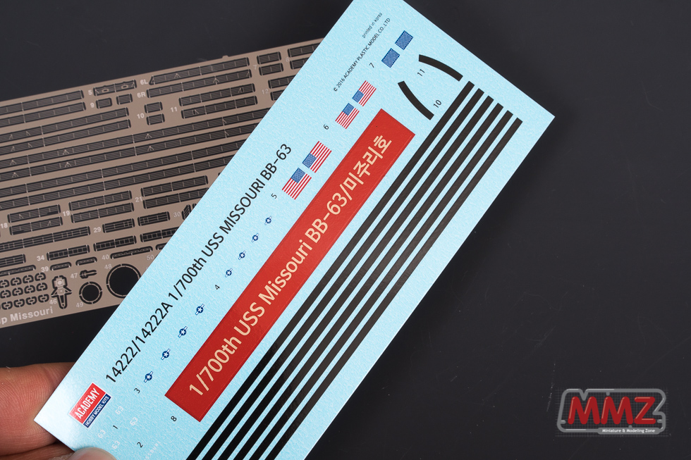 아카데미는 기존에 발매한 1/700 미조리 키트에 에칭, 마스킹실 그리고 도색가이드를 포함한 모델러판을 발매했습니다.