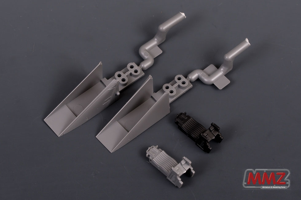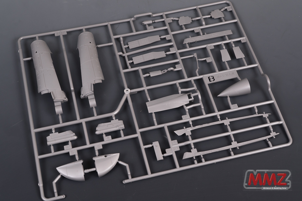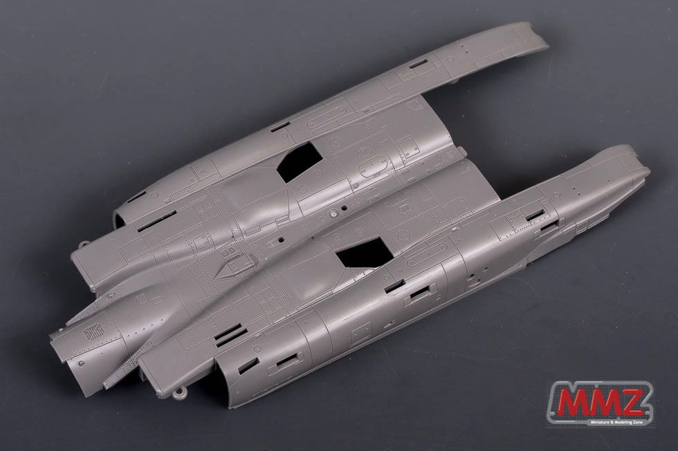 동체 하부는 하나의 부품으로 되어 있습니다. 패널 라인은 거의 1/32 수준으로 정교하게 조각되어 있습니다. 컨포널 탱크는 분리된 부품이 아닌 하나의 부품으로 구성되어 있습니다.