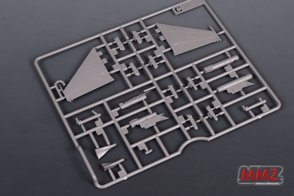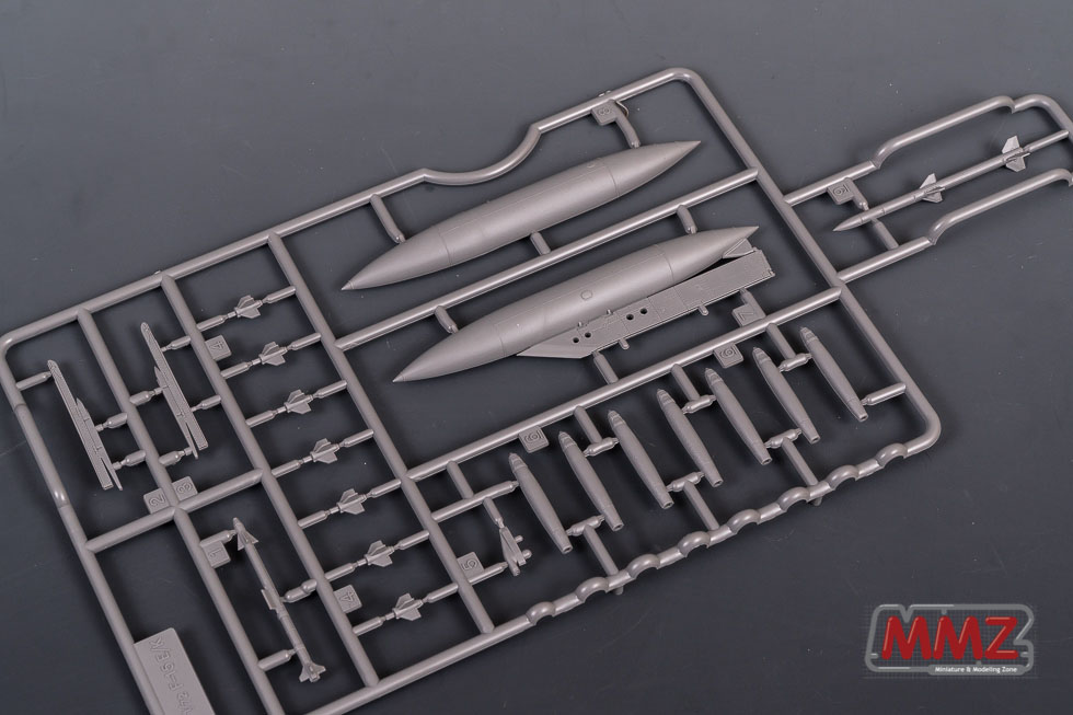 무장은 AIM-120C, AIM-9X, GBU-38이 포함되어 있습니다. 슬라이드 금형을 사용하여 분할을 최소화한 설계가 돋보입니다.