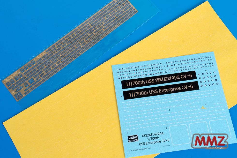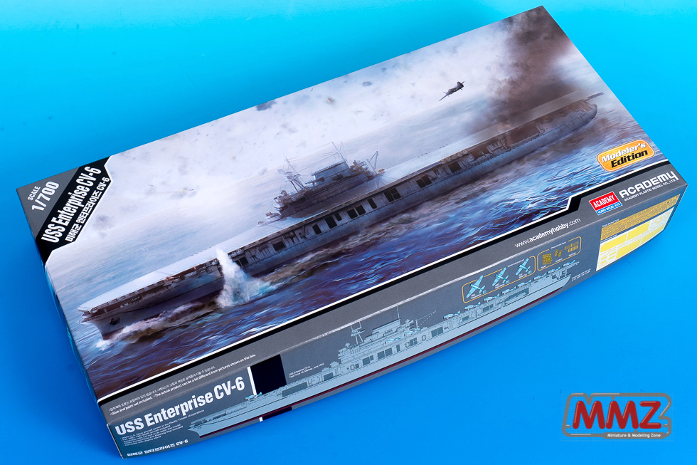 아카데미는 1/700 스케일 함선 시리즈중에 하나로 USS Enterprise CV-6을 발매했습니다. 본 제품은 1942년 미드웨이 해전시를 재현하고 있습니다. 본 제품은 모델러판으로 일반판 구성에 모델러를 위한 부품이 추가된 구성입니다.