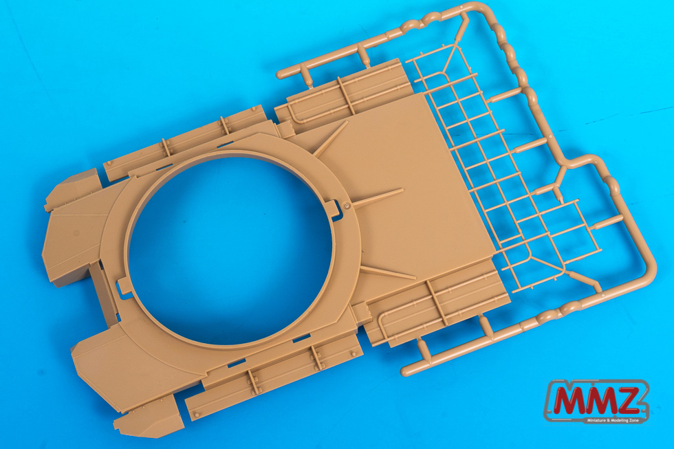 포탑 하부에는 하부 바스켓이 붙어 있습니다. 이전 K1 등의 제품에서 포탑 바스켓을 조립하는데 다소 어려움이 있었던 점을 고려, 설계 시 이처럼 조립 편의성을 높였다고 합니다. 바스켓의 두께도 기존 키트들 보다 얇아 한층 정밀해 보입니다.