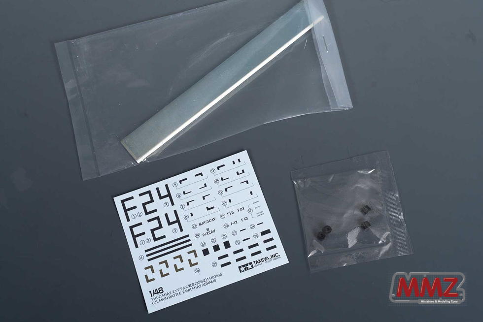 2대의 차량을 재현할 수 있는 데칼과 무게추, 포신등에 사용되는 폴리캡이 포함 되어 있습니다.