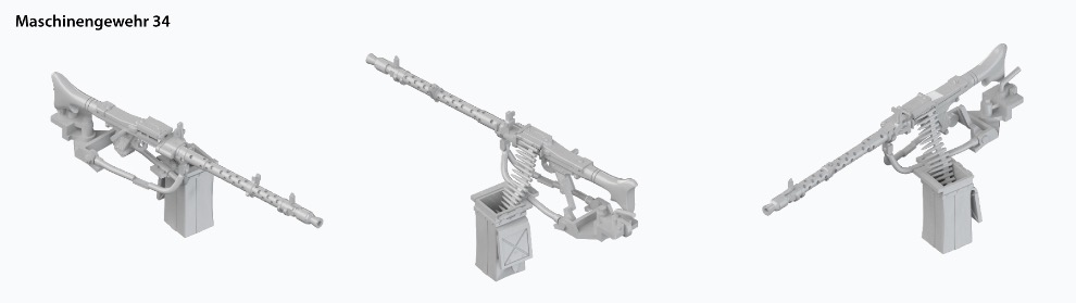 독일 전차 특유의 복잡하고 얇은 부품이 많아 정확한 모양의 재현이 어려운 MG34와 거치대가 정밀 레진으로 포함되었습니다.